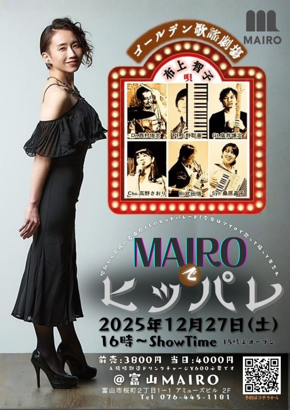 チケット予約 ticket@mairo.com イベント名/イベント日/お名前/予約枚数/電話番号を明記してメールお送りください。 返信で受付完了となります。 イベント当日、受付にて予約者名をお伝えください。