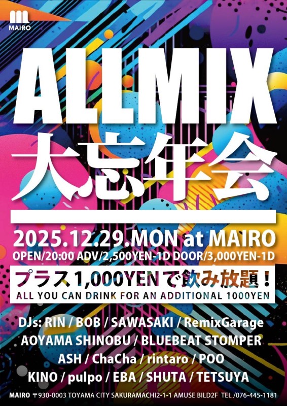 RIN / BOB / SAWASAKI / RemixGarage / AOYAMA SHINOBU / BLUEBEAT STOMPER / ASH / ChaCha / rintaro / POO / KINO / pulpo / EBA / SHUTA / TETSUYA